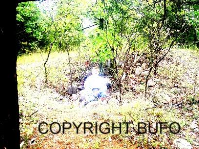 | The photo above shows a bioform at the top right hand corner. I cut and enlarged it so that you could get a better view of this rare 'sky creature'. Apparently it was attracted to the energies being generated in this pit. This is the same pit that Sharon H. was in (top photo) Another example of a bioform can be seen in the photo below. |