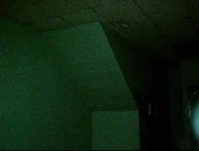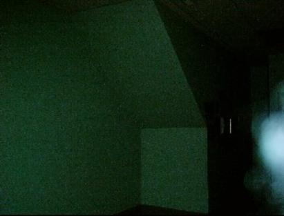 | See the orb waiting for her at the door.. and also the ectoplasm is playing with her. staying in the view of the camera as she scans the interior of this room before she leaves. |