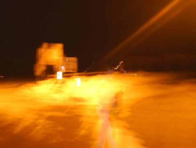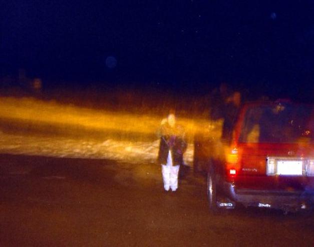 | Below is a photo of Jenny, taken by Mary Sutherland 1-31-02 with digital camera. Jenny appeared perfectly in the view finder but as you see, she becomes invisible and engulfed in light. You can barely see her legs. and a wee bit of her face. The who scenery looks like we are in another dimension. |