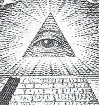 a pyramid with the ‘all seeing eye in a triangle’ hovering above.