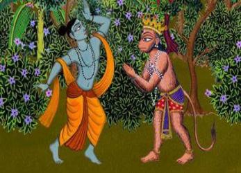 An illustration from India's Ramayana, of Rama and the Monkey King Hanuman...son of the god of winds.