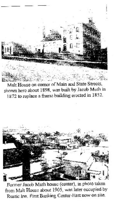 | Malt House Theater History Jacob Muth, born in Prussia in 1825, arrived in New York in 1846. After working at breweries in Milwaukee and Sheboygan, he came to Burlington in July 1852. The Malt House is located on the northwest corner of Main and State Streets and was erected in 1872 to replace a frame building which had been erected in 1852. Muth's house was on the southeast corner of State and Main. The former house was razed to make way for the First Banking Center. |