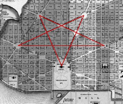 | Washington DC & Pentagram & Hexagram The original street plan of Washington DC was designed by Pierre L'enfant in 1791 at the request of George Washington Nick Reiter Suggested this site Check it out. |
