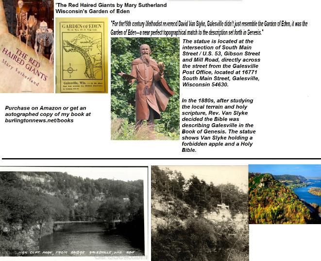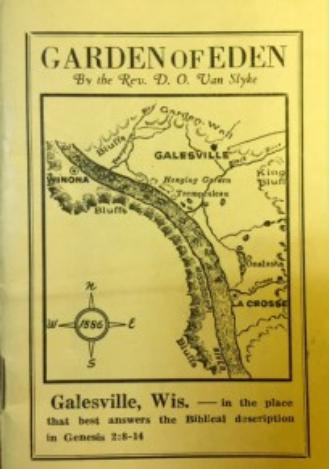 In In 1886, Methodist minister, Reverand D.O. Van Slyke published a small pamphlet that expounded on his belief that ‘Eden was located somewhere in an area stretching from the Allegheny Mountains to the Rocky Mountains.’ He later pin pointed the area on the east bank of the Mississippi River between La Crosse, Wisconsin and Winona, Minnesota near Galesville, WI.