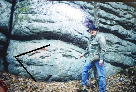 | Coiled rattlesnake ..head on bottom...coils upwards to the top of the rock Upwards indicating towards the heavens or the stars - Constellation prophecy of rattlesnake Taken on the Kentucky Virginia line - Jack Matney Pikeville Kentucky |