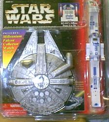 COLLECTORS STAR WARS R2D2 Watch with Millennium Falcon Collector Case Opens for Easy Watch Storage Back of Package has Behind the Scenes Info on Character C-3COP and Actor Anthony Daniels TM 1996 Lucasfilm ltd Manufactured and copyrighted 1996 Hope Industries Inc. Price 14.99