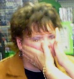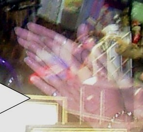 | The photo below shows me projecting my energies around this lady . Note the white light on her face and around her upper torso. This is caused from an energy ball I have created and am emitting to her person. You can also see my arm and hand extends up to her and touches her body although i am much too far away from her to havee achieved this physically. Also note the mist in the room caused from a portal or vortex I have created or opened. through the room as i have created a vortex or portal. |