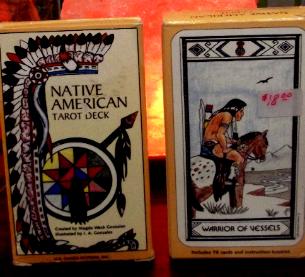 | Native American Tarot Deck The cards depict different aspects of daily life from a variety of Native American tribes including Apache, Arapaho, Cherokee, Cheyenne, Chippewa, Comanche, Hope, Huron, Inuit, Iroquois, Kiowa, Navaho, Papago, Ima, Pueblo, Shawnee, Sious, etc. These cards feature Native American History, symbolism and folklore including material related by a Blackfoot medicine man, Harry Sparrowhawk On Sale now for 12.99 |
