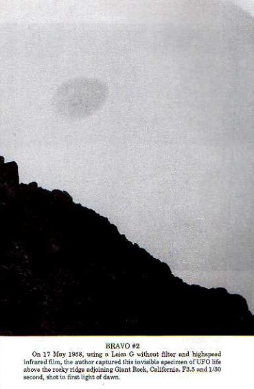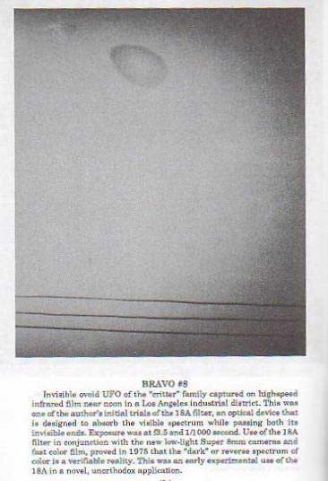 UFOs made by me through the years, using heat-sensitive film, reveal spheroidal objects. In the 1958 motion pictures made by Dr. Woods and myself, the highly mobile forms captured were