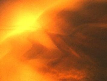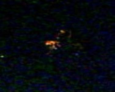 By now - all I want to do is jump in the car with Corral Gayle and get the heck out of there! But I was determined to take one more photo. I felt the creature become more agitated and sensed his 'rage'. When the camera allowed me to take another photo, I snapped the photo directed again towards the ufo in the sky, then- jumped in the car and told Corral ' We are out of here!' You can see the rage this creature was projecting in the colors of orange and red. However- now you can see 'orbs' coming into the photo. I believe these orbs were protecting me from this creature.; Thank you! |
