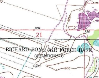 Richard Bong AFB, Kenosha County, Wisc., about 35 miles southwest of Milwaukee (designated 1955, abandoned while under construction. 1959; excess 1960) Like many new northern tier Air Force bases in the 1950s, Richard Bong AFB was going to be an ADC fighter-interceptor base but was taken over by SAC as it sought to disperse the bomber force. SAC assumed "jurisdiction, control and accountability" of Bong from ADC on June 5, 1957, assigning it to the Eighth Air Force, and perhaps intending to base B-58s there. SAC's 4040th Air Base Squadron was assigned as the base housekeeping unit on August 1, 1958.? The base and the squadron were transferred to Second Air Force on January 1, 1959.? Construction was suddenly ordered stopped on October 2, 1959, because, as Secretary of the Air Force James H. Douglas told the people of Racine, "Finally we realized that by 1961-62 when Bong would be ready, we would have several other medium bomber bases empty of squadrons and we really don't need Bong." (New York Times, November 5, 1959, "House Unit Visits Abandoned Base".)? |