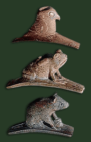 Carved ceremonial pipes These specimens include an owl, a toad, and a raccoon. Image from Ohio History Central.