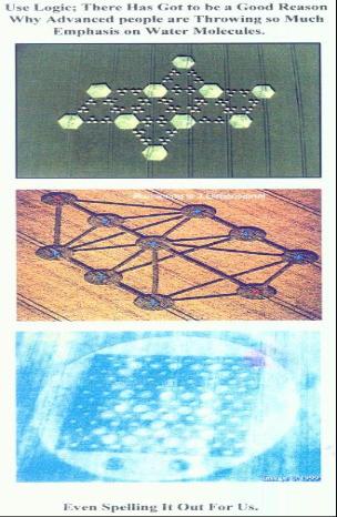 Dogon Sand Grid Crop Circle Water Molecules. (Single "dots" represent atoms, connected "dots" represent molecules.) Oxygen is element #8, Hydrogen is element #1. A water molecule consists of a single "8" + two "1's". To Understand the Implications of this Listen to Mary Sutherland's Interview Above with Laird Scranton - Now in Members Archives Comments from Judith Hedden of the Sand Grid Divination Translation thru Sacred Geometry Am so impressed with this that I must comment on the picture of the sand grid divination. First that the Egyptian culture is the only one who used squares to depict astrological houses based on the pyramid inch of 120. Cause 4 X 30 = 120. In the picture. of the Dogon sand grid note the squares, a couple show the Mayan five bar, where 1 clealy depicts the count of 8 with its 3 circles on the bars left. Even more interesting to me is the fox divination. Translate the word fox to #'s in the English alphabet giving the #'s 6-15-24 . To an example base pair 14 , add each of the above to it separately = 20-29-38. Now add these last three #'s together = 87. 87 reads from right is 78, which is # of cards in the Torah deck. The word Fox translates to the # 41 . Subtract the base # 14 from the # 41 = 27. The zero count of 27 (1 more ) = 28, being the Egyptian small cubic which is half (1/2) of our mathematics base. (1/2) read from right is the cubic inch. Amazing ! Coincidence, I don't think so. |