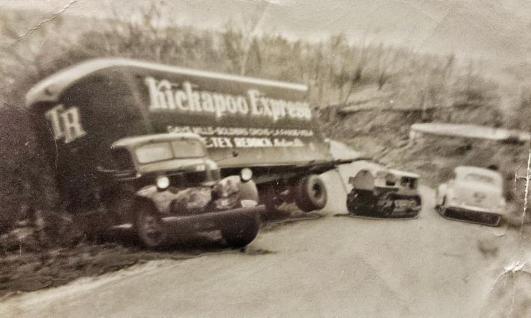 | Many semi-truck brakes went out going down the very steep hills from the orchard Hill Road, causing accidents such as the above. Shared from the Forgotten Wisconsin page. I see the truck as Tex Reddick’s name on it, he owned the factory in Gays Mills and move his business to Adams Wis. in 1950 |
