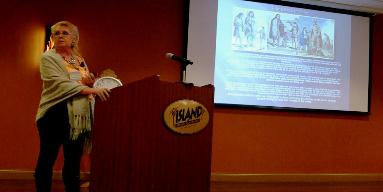 | Mary Sutherland lecturing in Michigan on the giants and ancient people of North America. Photo by Lee Pennington |