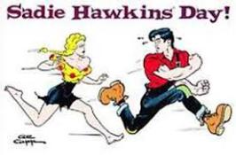| Did you know that the Kickapoo Valley was the inspiration for the classical show 'Lit'l Abner'. Click the window below and watch a Litl Abner show .Also Home of Kickapoo Joy Juice I learned about the Litl Abner story from a professor of etymology (the study of the origin of words) from the University of Chicago. He shared with me that he could always tell a person from the Kickapoo Valley, because it was the only place where their 'slang'and traditions matches the slang and traditions of the 'Ozarks'. He continued by telling me that most people think the Litl Abner comics was inspired by the 'Ozarks'... Not true...it was inspired by the people of the Kickapoo Valley. Still carried on through the 60's, Gays Mills still celebrated Sadie Hawkins Day. For you that are not in the know about this here is the dictionary description " It is an American folk event and pseudo-holiday originated by Al Capp's classic hillbilly comic strip Li'l Abner (1934–1978). This inspired real-world Sadie Hawkins events, the premise of which is that women ask men for a date or dancing. |