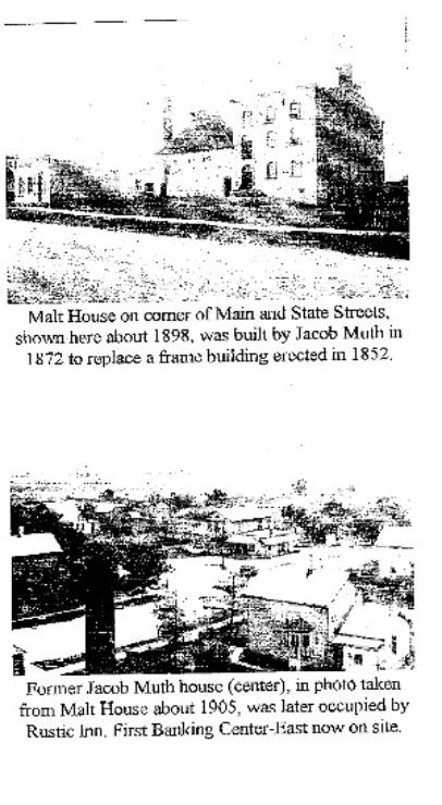 | Malt House Theater History Jacob Muth, born in Prussia in 1825, arrived in New York in 1846. After working at breweries in Milwaukee and Sheboygan, he came to Burlington in July 1852. The Malt House is located on the northwest corner of Main and State Streets and was erected in 1872 to replace a frame building which had been erected in 1852. Muth's house was on the southeast corner of State and Main. The former house was razed to make way for the First Banking Center. |