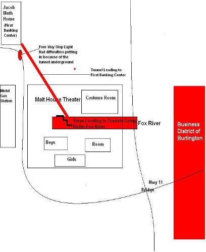 | Haunted Malt House Theater and Tunnels under Fox River Haunted Burlington Wisconsin Mary Sutherland Copyright 2004 |