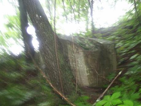 | The above photos are a beautiful example of a hidden camelot or two worlds existing within each other..both very much alive. I was taking a photo of a cut stone from the temple area (left photo) when my presence activated the portal area (right photo) In right photo note the swirling energy rotating clockwise. The spining energy of the vortex is causing the photo to blur and giving it a melting type appearance. |