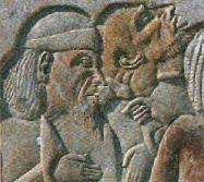 Syrian and Hittite Prisoners in the tomb, south wall of the second court, circa 1325 BC. The Egyptians took care to portray their enemies as accurately as they could: On the left, a pair of Indo-European Hittites, and on the right, Semitics from Syria. |