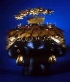GIANT HEADRESS FROM UR From the Royal Tombs of UR. Giant gold headress of Queen Puabi. This Gold headress is three times the size of a 'normal' human head. |