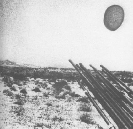 This photo was taken with infrared (IR) film by Trevor James Constable on August 25, 1957 in the Mojave desert of southern California.