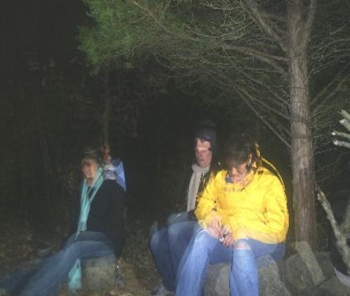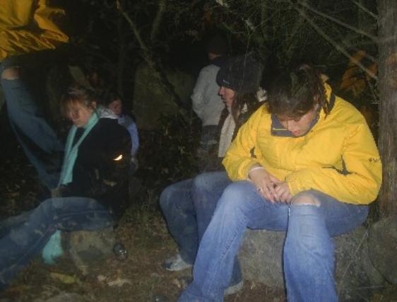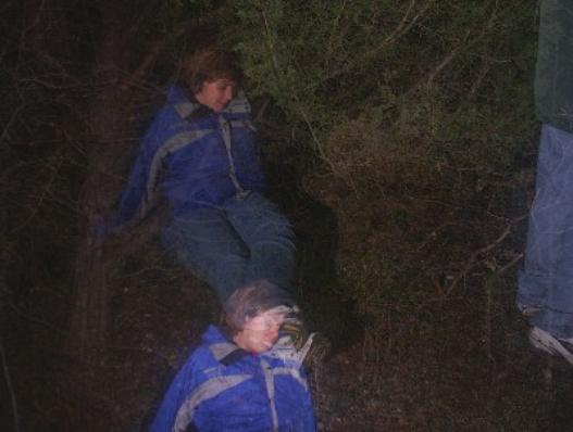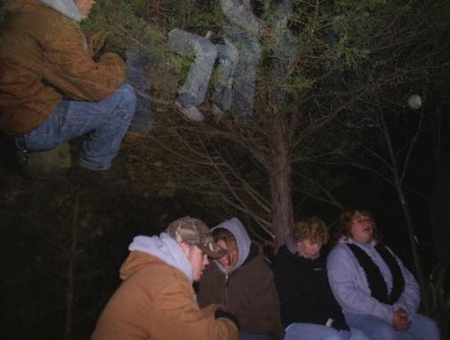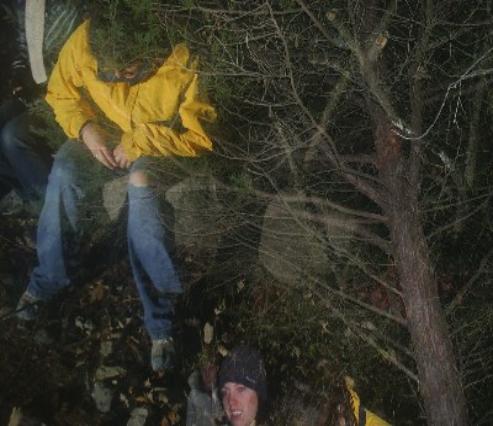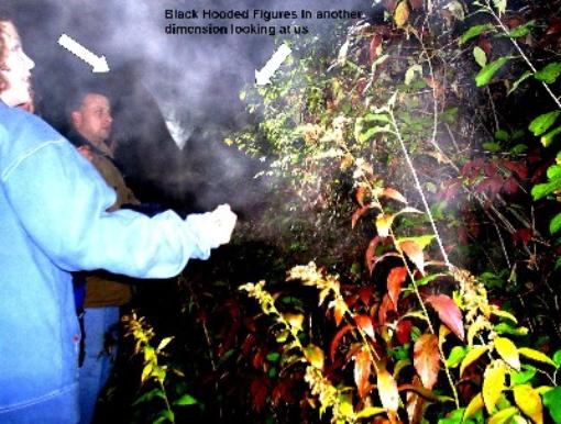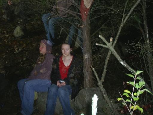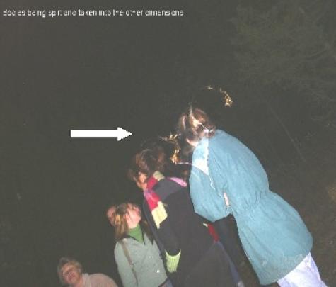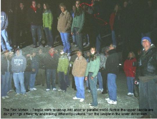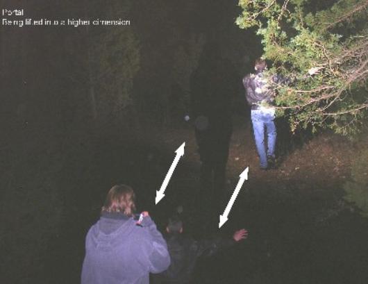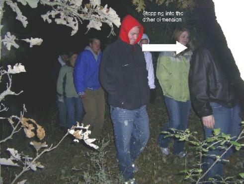 Photos taken by samsung 3.2 megapixel digital camera by Mary Sutherland 10-21 -05 in woods outside of Burlington, WI - Vortex Area Not only do we see people's selfs splitting and going into other dimensions - BUT another anomalie is that many times after we leave this area, people will have a blue haze around them as seen in the bottom right photo (above) |