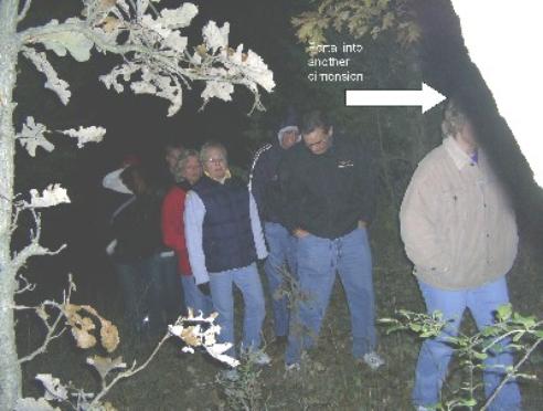 Although there has been very little promotion of this area, through word of mouth , the Wooded Area has become a popular place for people to experience the portals. As you see, it pulls large crowds on the weekends with people coming from not all over Wisconsin , but neighboring states and Canada. As you walk into the woods, you will find offerings of candy and tobacco from those that have come to give thanks to the spirits of the woods. Not only do the visitors love these spirits but the spirits love having them come, making various attempts at communication! |