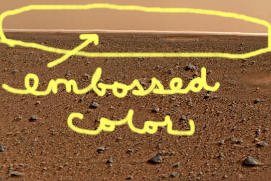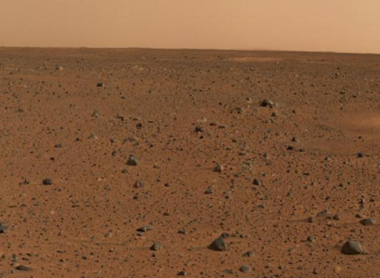 This is the Top Part of the Photo is the horizon that was Added to Mars photo to produce what we see below. However the One photo below is 2 photos made into one. See Photo Below. |
