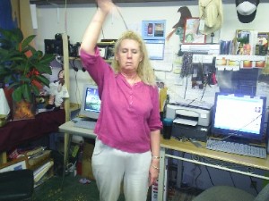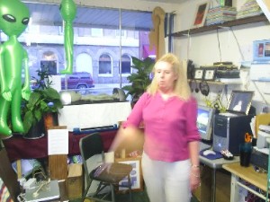 Before the show, Steph , Brad and Mary Sutherland decided to experiment with the the om. Hoping to photograph the om , Brad photographed Mary sutherland as Steph sent the om to the Center. Following is what brad was able to capture on digital Camera.