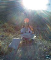 | Photo above While Steph is giving Teo a reading and Mary is in total concentration as to what is being said, a vortex is created around her body. Note the swirling energies and the phase shifting. This is what sacred ritual appears to be about, bringing the energy of consciousness, back in upon itself. The end of the Vedas says "tat tvan asi", which means "that thou art". This is essentially the message of "I am that I am", and "As Above, So Below". The mathematics of recursion may be a spin path to the zero point of infinite energy/information. The heart's recreation of this fractal at the moment of compassion, to embed, may be most powerful phone call home human glands can make. Think about it. |