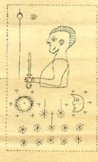 Hebrew staff symbolic of priest wand Note all seeing eye above priest's head. |