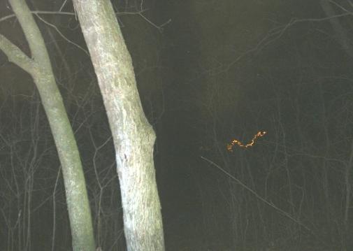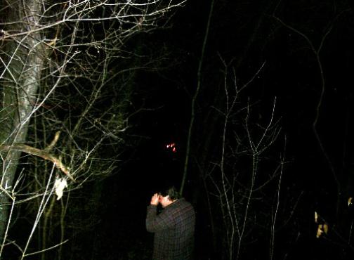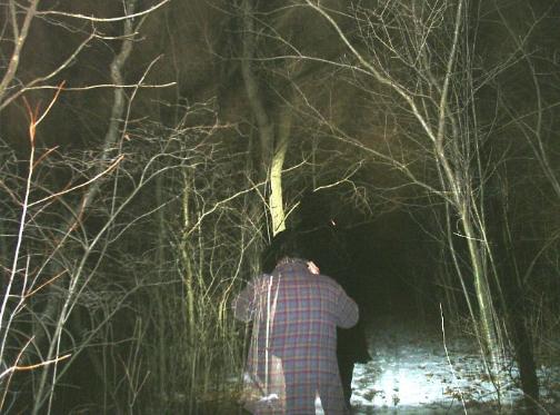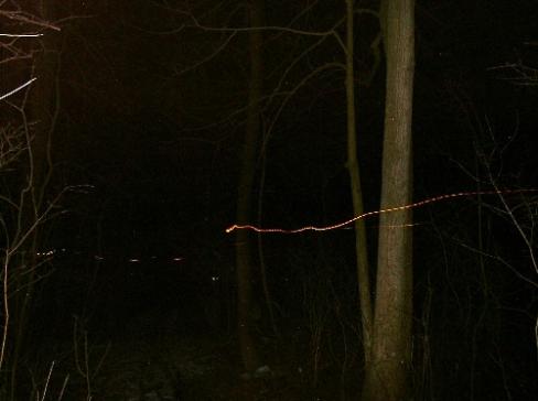 | Strange Lights at the Haunted Woods 2-27-05 Photographed with Digital Camera Copyright @2005 Mary Sutherland There is absolutely no light in these woods, except for the flashes of our camera...not even a flashlight. |