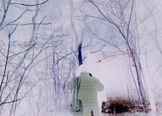 | NEGATIVE OF ABOVE PHOTO ...Thanks Teo! This negative shows how solid this 'shadowy' person in front of him is and it also shows how less solid Tommy is becoming. Could this be the Shadow Person that Heidi Hollis Speaks of or another form of a shadowy being. |