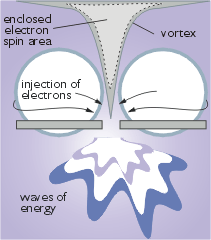 | The centrifugal effect in a vortex throws heavy liquid/air out to the perimeter whilst lighter air/ liquid is pushed to the center. Electrically, the air polarized with negative ions or as electrons will be pushed to the center and down, the air with positive ion content will move upward and outward. With mass weights for an electron at 9.109x10- 31 kg. and a positive ion of air at around 2.656x10-26 kg it can be seen that the negative electron can be only one thirty-thousandth of the positive ion, and of course much more agile. Latent Powers at Molecular Level Professor J.H.Jeans1 writing about electrons, particularly of the innate strength of their negative charge wrote: "According to the best recent determinations, the amount of this charge is 4.774 x 10 –10 electrostatic units, while the mass of each electron is 9.00 x 10 –28 grammes. These determinations, which are due to Millikan and Bucherer, are probably accurate to about one part in a thousand. To a lower degree of accuracy the radius of the electron is probably about 2 x 10 –13 cms. We can form some conception of the intense concentration of mass and electrification in the electron by noticing that a gramme of electrons, crammed together in cubical piling, would occupy only 7 x 10 –11 cubic centimetres, while two [such] grammes of electrons placed at a distance of a metre apart would repel one another with a force equal to the weight of 3 x 10 22 tons. The electric force of repulsion outweighs the gravitational force of attraction in the ratio of 4.2 x 10 42 to one." Similar to how Viktor Schauberger’s aerodynes utilized levitation thrust the ufo-type expulsion energy is a created reaction to the comprehensive densation of the air that is continually being sucked in through the vortex and therefore making the air below the craft more dense than the air above the craft. In other words the vortex is to create a higher-pressure area below the craft and a lower- pressure area above the craft. The centrifugal effect in a vortex throws heavy liquid/air out to the perimeter whilst lighter air/ liquid is pushed to the center. Electrically, the air polarized with negative ions or as electrons will be pushed to the center and down, the air with positive ion content will move upward and outward. With mass weights for an electron at 9.109x10- 31 kg. and a positive ion of air at around 2.656x10-26 kg it can be seen that the negative electron can be only one thirty-thousandth of the positive ion, and of course much more agile. Latent Powers at Molecular Level Professor J.H.Jeans1 writing about electrons, particularly of the innate strength of their negative charge wrote: "According to the best recent determinations, the amount of this charge is 4.774 x 10 –10 electrostatic units, while the mass of each electron is 9.00 x 10 –28 grammes. These determinations, which are due to Millikan and Bucherer, are probably accurate to about one part in a thousand. To a lower degree of accuracy the radius of the electron is probably about 2 x 10 –13 cms. We can form some conception of the intense concentration of mass and electrification in the electron by noticing that a gramme of electrons, crammed together in cubical piling, would occupy only 7 x 10 –11 cubic centimetres, while two [such] grammes of electrons placed at a distance of a metre apart would repel one another with a force equal to the weight of 3 x 10 22 tons. The electric force of repulsion outweighs the gravitational force of attraction in the ratio of 4.2 x 10 42 to one." Similar to how Viktor Schauberger’s aerodynes utilized levitation thrust the ufo-type expulsion energy is a created reaction to the comprehensive densation of the air that is continually being sucked in through the vortex and therefore making the air below the craft more dense than the air above the craft. In other words the vortex is to create a higher-pressure area below the craft and a lower-pressure area above the craft. |