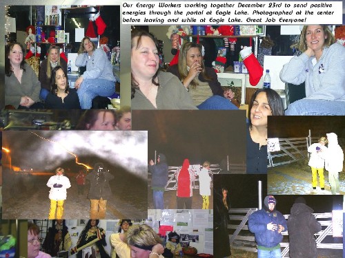 | Cheryl and her family out at Eagle Lake photographing UFOs and Intradimensional gateways. These orbs were like grape clusters. They formed these clusters around all of us like what you see in this photo. |