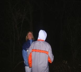 | Jenny looking to the sky for UFOs. Both Jolene and Jenny are out at the haunted woods trying to photograph ET. |