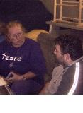 | Terri (in white coat) has implants behind ear. |