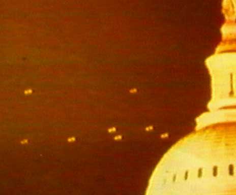 | Reference Source: http://www.bibleufo.com/ufos911.htm Great Job Guys! Argentina, Veronica: Hundreds of residents witnessed six discs circling above the town, the disappearing into the night sky. This sighting was written within hours of a similar report from Captain Paul Carpenter near Denver. Carpenter reported the craft were traveling at 3,000 miles per hour, making it possible for the saucer to have appeared in both locations. Brazil, Itenhaem: A woman was awakened by a thunderclap and a strong bluish light. As she got out, she saw a large number of hovering disk-shaped machines resembling "inverted soup plates" 200 m away at an altitude of about 1 m. She observed them for 30 min, saw two figures standing on one of the craft and looking at the sky. They went back inside, and shortly thereafter the "fleet" took off, one object at a time. France, Belle-Ile: At a place alled "La Butte" a luminous sphere, which seemed to spin, its color changing from orange to white, was seen at low altitude. It oscillated left and right, then took off toward the southwest, according to the witness, Mr. Gauci. France, Le Vigan: Approximate date. Figures with helmets and masks were seen through lighted windows inside a bright yellow, cigar-shaped object on the ground. Length 30 m, diameter 6 m. Forward section was rounded, and a sort of fog was noted at both ends of object. France, Magneville: Men at work in the forest saw large, circular objects similar to parachutes coming down. Half a dozen witnesses. France, Marignane Airport: Customs officer Gabriel Gachignard observed a cigar-shaped object land briefly on the airfield 100 m away, producing a dull sound. The object was dark with four lighted windows. It took off with a "swish" and a shower of sparks when the witness ran toward it. Germany, Hasselbach: Oscar Linke, former Wehrmacht major, and his daughter Gabrielle, 11, had to leave their motorcycle when they had a flat tire. Inside the woods the girl noticed two men in silvery suits examining the ground in a clearing near a pink disk-shaped object, 8 m in diameter, showing a double row of openings around the rim and a black turret on top. One of the men had a flashing box. Both men went inside, and the disk vibrated, rose along the turretlike cylinder, then spun faster and rose out of sight. Ireland, Dublin: A child was burned when a strange disk, 25 cm in diameter, landed near Dublin. Italy, Castelfranco: Nello Ferrari, 41, a farmer, found himself flooded with a reddish light and saw a large plate 10 m above him, between gold and copper in color. At the center of the bottom surface, 20 m in diameter, was a cylinder of 5 m diameter made of rapidly rotating parts, producing a noise similar to that of an electric motor. On the upper surface was a turret inside which three occupants were visible, looking directly at the witness. They looked perfectly human, wore rubber coveralls and transparent face masks. They spoke a few words, which were not understood; a loud metallic noise was heard; and the top part of the object lowered itself toward the lower plate. The sound gained intensity, and the craft flew vertically at very high speed. Italy, Vico: A man who was fishing in the Serchio River saw a disk hovering for 10 min. From it hung a hose that plunged into the water. The object was 20 m in diameter, with five propellers in the rear and a dome with something like blades on top. An orange glow could be seen through slits along the deck. A man wearing a diving helmet looked at the witness through a window, and he received a kind of electric shock as a "green ray" hit him. He looked up with difficulty, in time to see the object fly away toward the east. Six days later a stranger with a foreign accent contacted the witness and intimidated him. Labrador, Goose Bay: A fiery, spherical object made a right-angle turn during an observation by a C-54 crew flying from Westover to Goose Bay. It was also seen from the ground by the control tower and by two men who plunged to the earth when the object made a low pass at them. It went away at 2247. Morocco, Dai-el-Aouagri: Approximate date. R. Petijean saw a luminous object, 20 m diameter, on the ground. It gave off bluish flashes as it took off, leaving a smell of burning sulphur. Peru, Puerto Maldonado: On July 19, the attention of Customs Inspector Sr. Domingo Troncoso, on the jungle frontier with Bolivia, was called to a very strange cigar-shaped flying object over the river area. The big dirigible-shaped craft was flying horizontally and fairly low in the sky, passing from right to left from the observers position. It was leaving a dense trail of thick smoke, vapor, or substance on its wake. This object was a real, structured, physical machine and may be seen from its reflection in the waters of the Madre de Dios river underneath it. The object was estimated to be over a hundred feet long. USA, Arizona, Tucson: On May 1, a base intelligence officer at Davis-Monthan AFB, Major Rudy Pestalozzi, along with an airman, looked up as a B-36 flew overhead and saw two shiny discs overtake the bomber, slow to its speed and position themselves alongside. USA, California George AFB,: Three men on the arms range, plus one Lt. Colonel 4 miles away witnessed five flat-white discs about the diameter of a C-47's wingspan (95') flew fast, made a 90^ turn in a formation of three in front and two behind, and darted around, for 15-30 seconds. USA, Florida, West Palm Beach: Scoutmaster J. D. Desverges told of having his arm singed by the blast of a UFO near West Palm Beach, Florida. Desverges, a hardware salesman, scoutmaster, and former marine, said that he not only sighted a flying saucer but came so close to one that the hair on his forearm was singed. He was 30 years old then. He said he was "blasted" by a "ball of fire" from the object when he investigated flashes of light near a country road. USA, Kansas, Frontenac: A man driving through a wood encountred a strange object and s