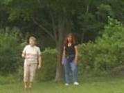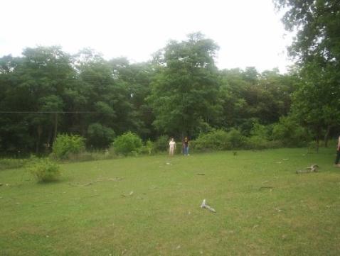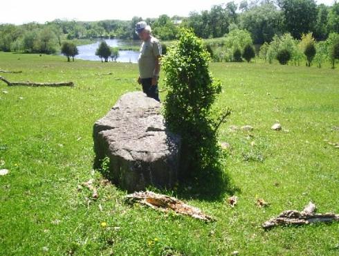 Sharon and Patty standing down next to what we believe to be one of three manitou (spirit) stones. Sharon felt a portal at this point. They are standing IN FRONT of a fence - but as you look at the photo cuts and enlargement of cuts it seems that the fence is in front of them...not true..what you see is lines of energy running in front of them. Notice also the auroa around both of the girls head and how charged the aura is. It can be seen in the negative. |