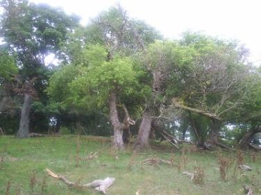 Vortex Twisted trees and nut trees are signs of a vortex. Notice the trees - how they twist and distort . Notice the scattered debris lying around the surface of the mound. |