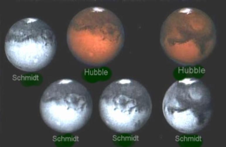 Above is a comparison of Mark Schmidt's Photos taken from their observatory and the Hubble. Whereas the Hubble cost millions of dollars Mark is proud to show that their telescopes costing only thousands and seems to take comparable photos. Pictures taken several miles outside of Burlington Wisconsin by Mark Schmidt Modine Benstead Observatory off Hwy A Thank You Mark for Providing these Pictures for Us! August 2003 |
